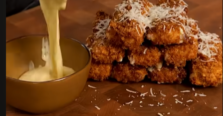 - Dans une première assiette creuse, déposer la farine. Battre les oeufs dans une deuxième assiette creuse et placer la chapelure dans une troisième. Fariner les boules de fromage. Les passer dans les oeufs battus. Égoutter. Répéter ces deux opérations pour chaque bouchée de fromage, puis presser dans la chapelure pour bien les enrober.